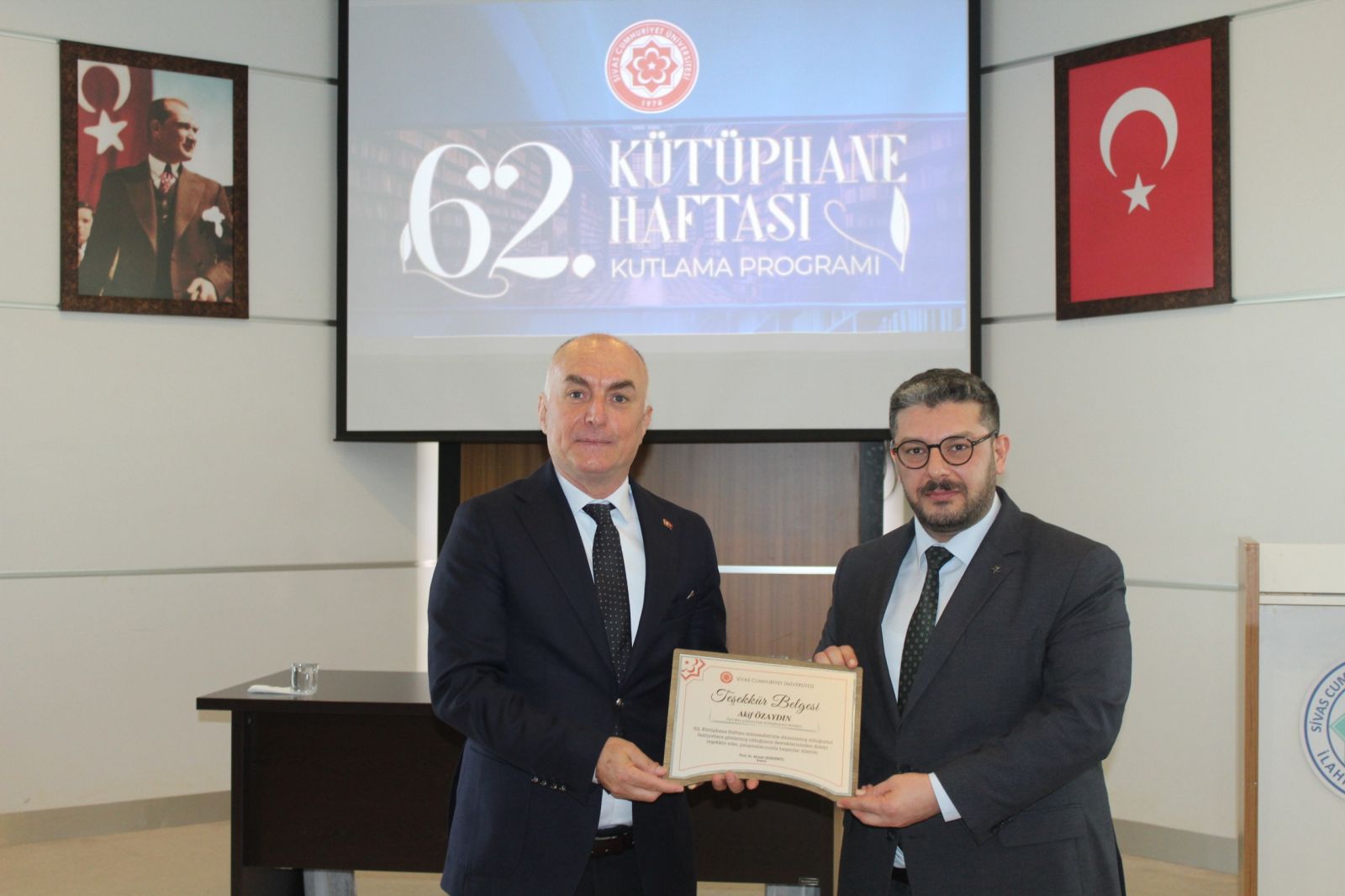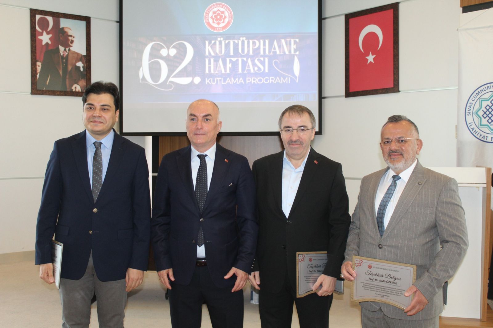 SCÜ yayınlarından eserleri yayımlanıp en çok satış yapmış olan kitap yazarlarına ve kütüphaneden en çok kitap alanlara Rektör Vekili Prof. Dr. Süleyman Değirmen plaket takdim etti.