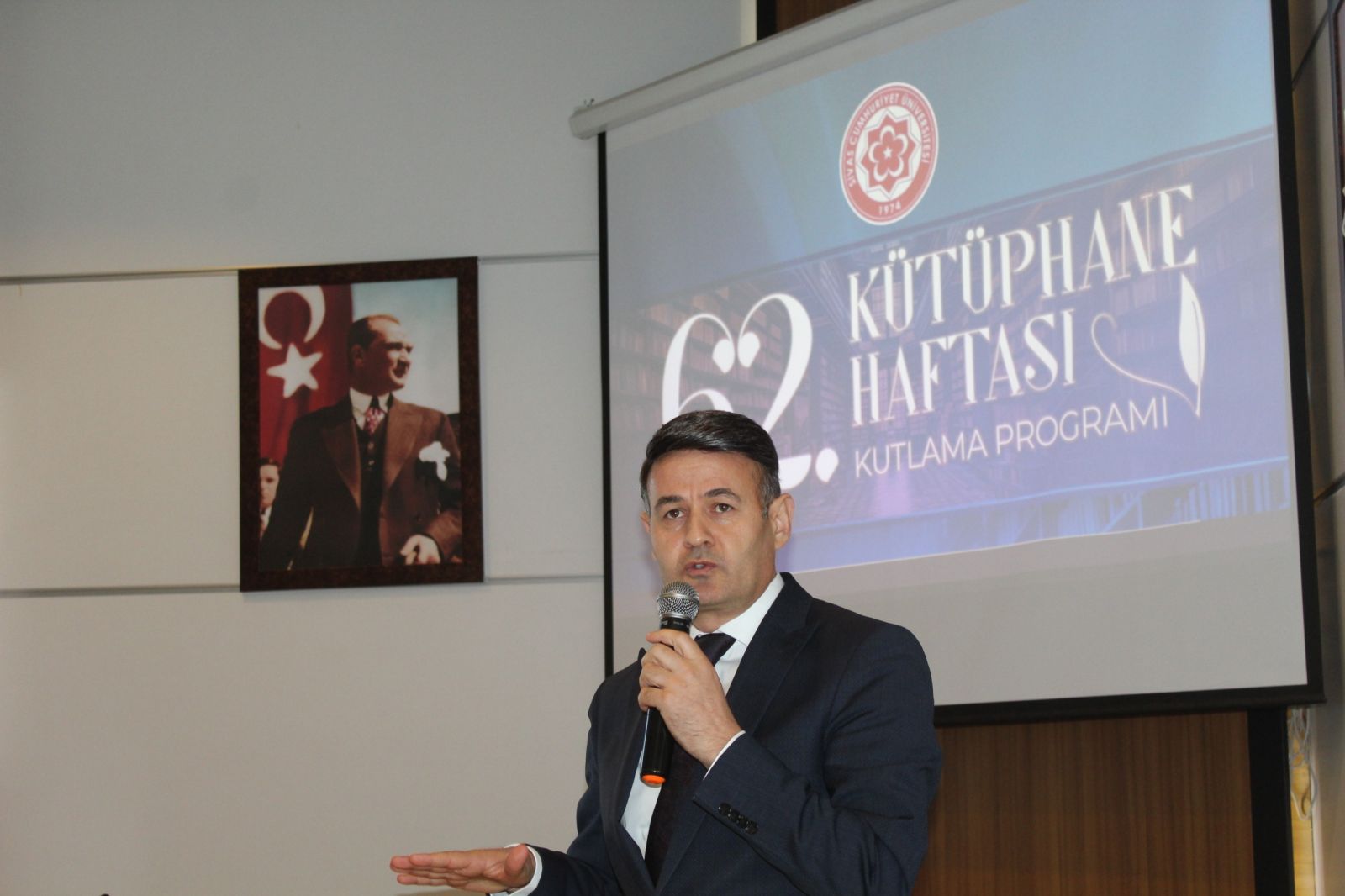 Fakültemiz Abdulvahabi Gazi Konferans Salonu’nda 62. Kütüphaneler Haftası nedeniyle kutlama programı düzenlendi. Programa Rektör Vekili Prof. Dr. Süleyman Değirmen, çok sayıda fakülte dekanı, akademik ve idari personel ile üniversitemizin çeşitli fakültelerinden öğrenciler katıldı. Programın açılışında Fakülte Dekanımız Prof. Dr. Bilal Deliser ve Kütüphane Daire Başkanı Alper Duran birer konuşma yaptılar.